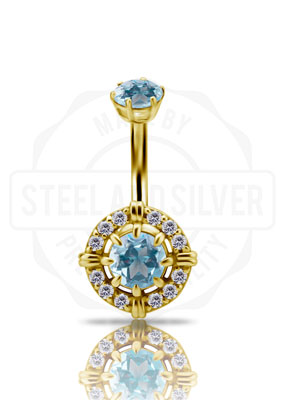 18K GOLD INT. NAVEL BANANA SET W. GENUINE BLUE TOPAZ AND LAB CREATED DIAMONDS