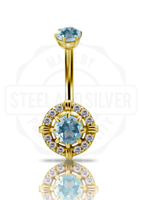 18K GOLD INT. NAVEL BANANA SET W. GENUINE BLUE TOPAZ AND LAB CREATED DIAMONDS