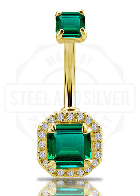 18K GOLD INT. BANANA SET W. BRAZILIAN EMERALD AND GENUINE DIAMONDS