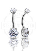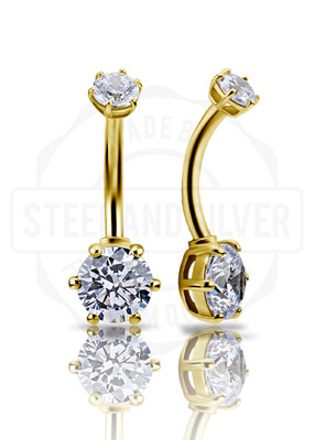 18K GOLD INT. THREADED NAVEL BANANA SET W. PREMIUM ZIRCONIA (4+6.5MM)