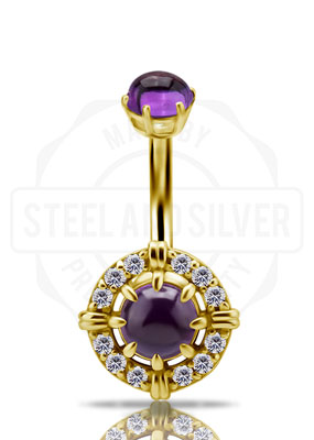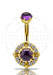 18K GOLD INTERNAL NAVEL BANANA SET W. GENUINE DARK AMETHYST