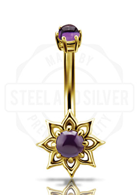 18K GOLD INTERNAL NAVEL BANANA SET W. GENUINE DARK AMETHYST