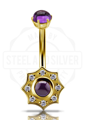 18K GOLD INTERNAL NAVEL BANANA SET W. GENUINE DARK AMETHYST