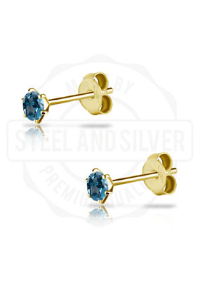 18K GOLD EAR STUD SET WITH GENUINE BLUE TOPAZ (3MM)