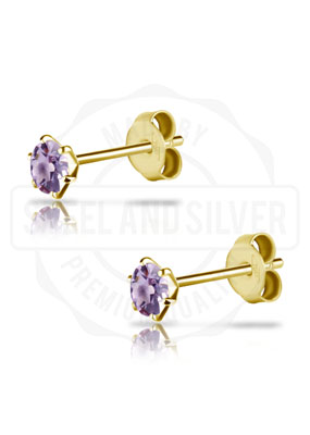 18K GOLD EAR STUD SET WITH GENUINE PINK AMETHYST