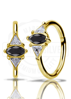 18K GOLD HINGED CONCH RING SET W. TRIANGLE AND MARQUISE PREMIUM ZIRCONIA