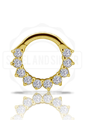 18K GOLD HINGED SEPTUM & DAITH CLICKER SET W. LAB CREATED DIAMONDS