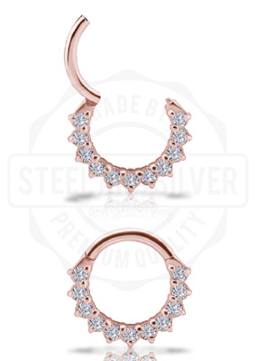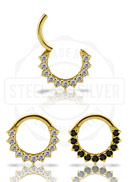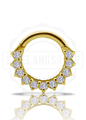 18K GOLD HINGED SEPTUM & DAITH CLICKER SET W. LAB CREATED DIAMONDS