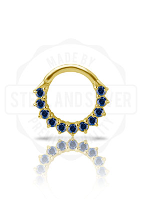 18K GOLD HINGED SEPTUM & DAITH CLICKER SET W. LAB CREATED GEMSTONE