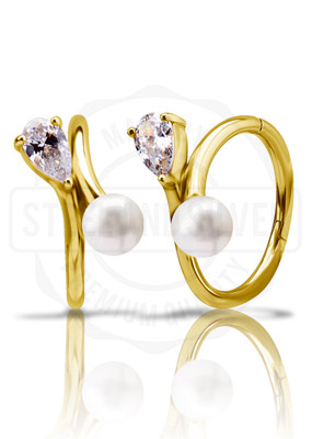 18K GOLD HINGED RING SET W. PEAR SHAPE PREMIUM ZIRCONIA