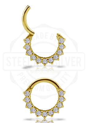 18K GOLD HINGED SEPTUM & DAITH CLICKER SET W. PREMIUM ZIRCONIA