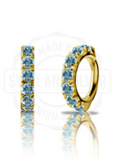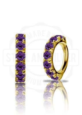 18K GOLD HINGED CLICKER SET W. GENUINE DARK AMETHYST