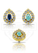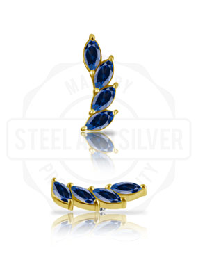 18K GOLD INTERNAL ATTACHMENT SET W. MAROUISE LAB CREATED GEMSTONE