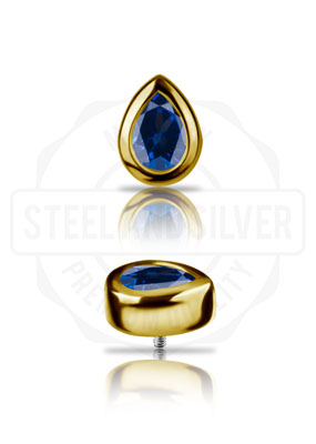 18K GOLD INTERNAL ATTACHMENT SET W. PEAR SHAPE LAB CREATED GEMSTONE