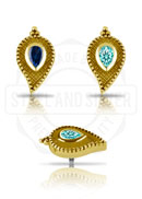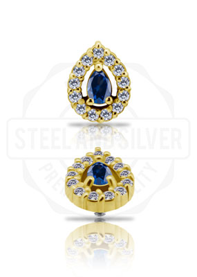 18K GOLD INTERNAL ATTACHMENT SET W. PEAR SHAPE LAB CREATED GEMSTONE