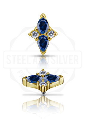 18K GOLD INTERNAL ATTACHMENT SET W. PEAR SHAPE LAB CREATED GEMSTONE