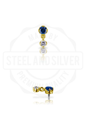 18K GOLD INTERNAL ATTACHMENT W. DANGLE SET W. LAB CREATED GEMSTONE