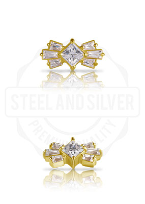 18K GOLD INTERNAL ATTACHMENT SET W. TAPPER BAGUETTE PREMIUM ZIRCONIA