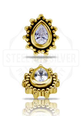 18K GOLD INTERNAL TRIBAL ATTACHMENT SET W. PEAR SHAPE PREMIUM ZIRCONIA