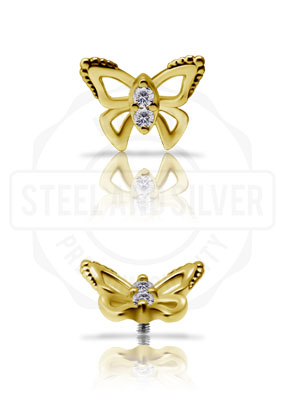 18K GOLD INTERNAL BUTTERFLY ATT. SET W. PREMIUM ZIRCONIA