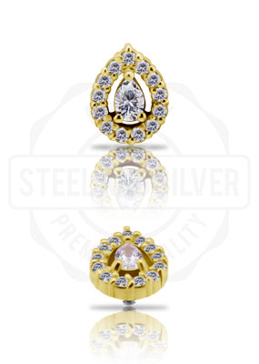 18K GOLD INTERNAL ATTACHMENT SET W. PEAR SHAPE PREMIUM ZIRCONIA