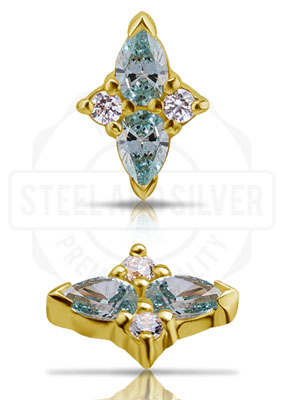 18K GOLD INTERNAL ATTACHMENT SET W. PEAR SHAPE PREMIUM ZIRCONIA