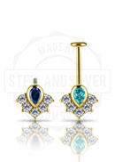 18K GOLD INTERNAL VERTICAL HELIX ATT. SET W. LAB CREATED GEMSTONES