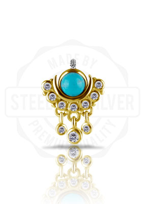 18K GOLD INTERNAL ATT. FOR VERTICAL HELIX SET W. TURQUOISE A. WHITE TOPAZ