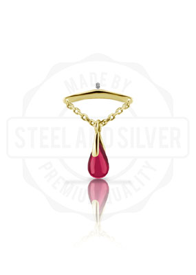 18K GOLD VERTICAL HELIX ATTACHMENT WITH CHAIN AND CREATED RUBY DANGLE