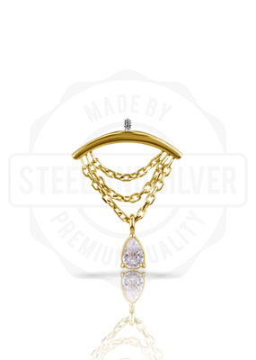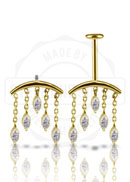 18K GOLD INT. VERTICAL HELIX FLOATING CHAIN ATT. SET W. PREMIUM ZIRCONIA