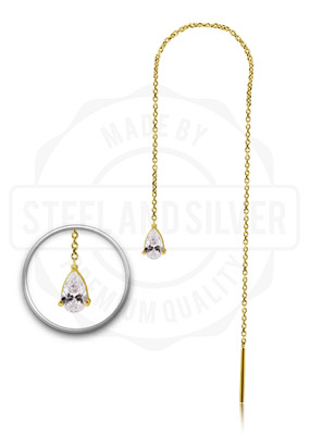 18K GOLD THREADER CHAIN (10CM) WITH PEAR SHAPE PREMIUM ZIRCONIA