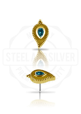 18K GOLD THREADLESS ATTACHMENT SET W. PEAR SHAPE LAB CREATED DIAMOND
