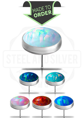 18K GOLD THREADLESS ATTACHMENT W. LAB CREATED OPAL (5MM DISC)