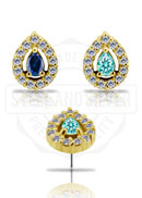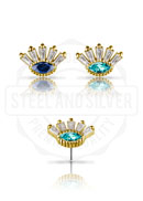 18K GOLD THREADLESS ATTACHMENT SET W. MARQUISE LAB CREATED GEMSTONE