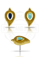 18K GOLD THREADLESS ATTACHMENT SET W. MARQUISE LAB CREATED GEMSTONE