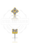 18K GOLD THREADLESS QUAD ATTACHMENT SET W. LAB CREATED GEMSTONE