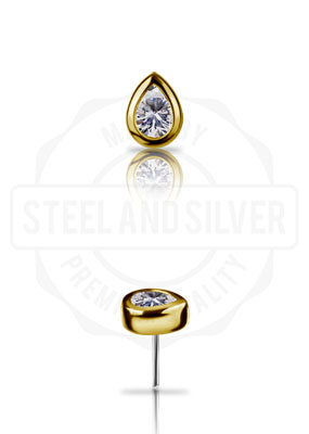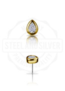 18K GOLD THREADLESS ATTACHMENT SET W. PEAR SHAPE PREMIUM ZIRCONIA