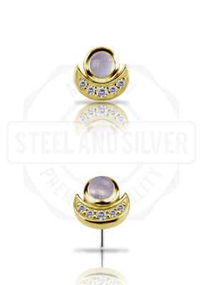 18K GOLD THREADLESS ATTACHMENT SET W. GENUINE RAINBOW MOONSTONE AND WHITE TOPAZ