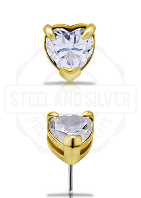 18K GOLD THREADLESS ATTACHMENT SET WITH HEART SHAPE PREMIUM ZIRCONIA