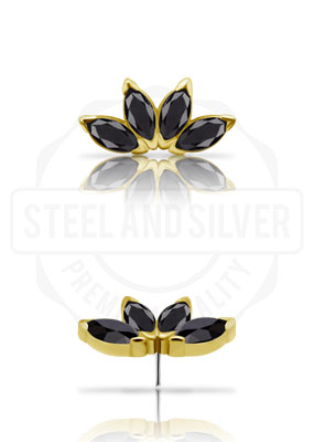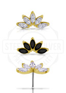 18K GOLD THREADLESS FAN ATT. SET W. 4 MARQUISE PREMIUM ZIRCONIA (0.5TL SYSTEM)