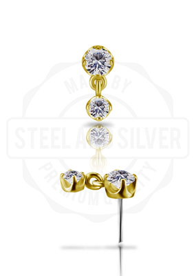 18K GOLD THREADLESS ATTACHMENT W. DANGLE SET W. PREMIUM ZIRCONIA