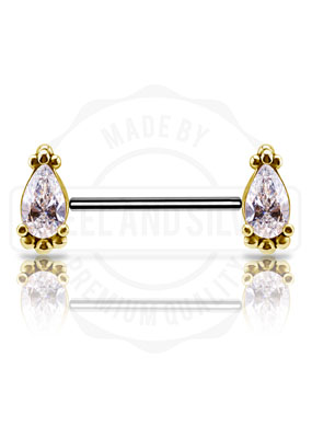 18K GOLD AND TITANIUM THREADLESS NIPPLE BRBL SET W. PREMIUM ZIRCONIA
