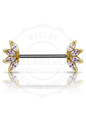 18K GOLD AND TITANIUM THREADLESS NIPPLE BRBL SET W. PREMIUM ZIRCONIA