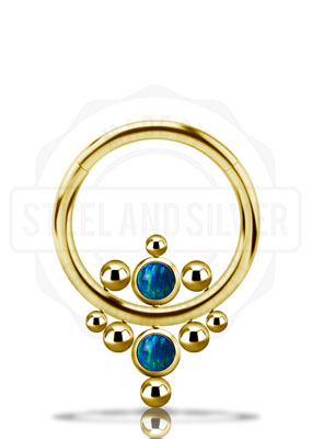 DEVILHEART® TIT. GOLD PVD CLUSTER CLICKER SET W. LAB CREATED OPAL