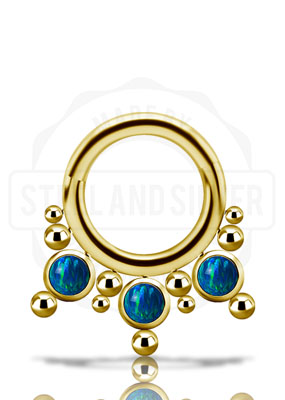 DEVILHEART® TIT. GOLD PVD CLUSTER CLICKER SET W. LAB CREATED OPAL