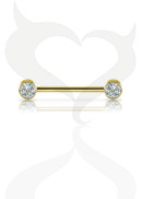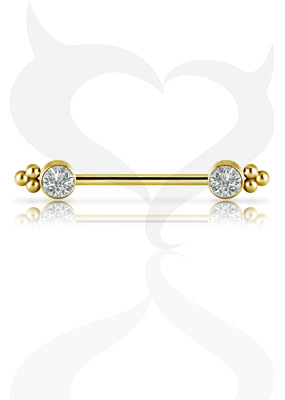 GOLD PVD TITANIUM NIPPLE BARBELL SET W. PREMIUM ZIRCONIA