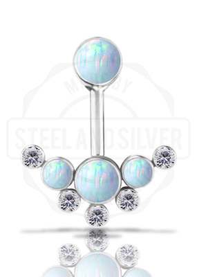 DEVILHEART® TIT. TL VERTICAL HELIX SET W.LAB CREATED OPALS & PREMIUM ZIRCONIA