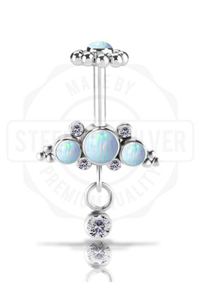 DEVILHEART® TIT. TL VERTICAL HELIX SET W.LAB CREATED OPALS & PREMIUM ZIRCONIA