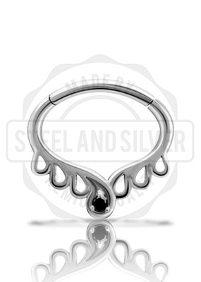 SS316L HINGED SEPTUM/DAITH CLICKER SET W. CUBIC ZIRCONIA