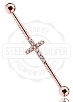 ROSE GOLD PVD SS316L INDUSTRIAL CRYSTAL BARBELLS SET W. CUBIC ZIRCONIA